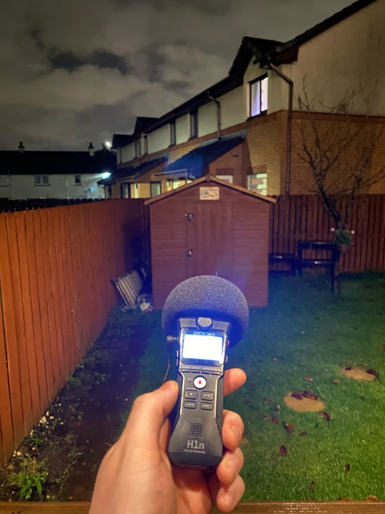 The H1n micro SD was corrupted, and I lost a lot of audio, so I couldn’t record any of the audio I wanted to in my house for the beginning of the soundscape.