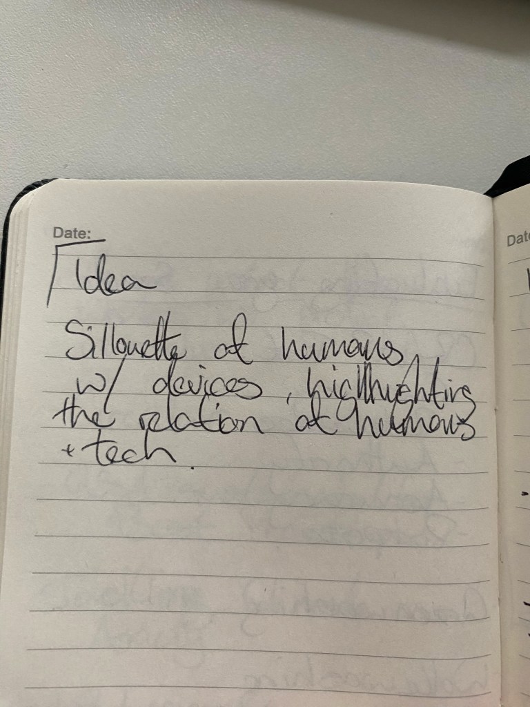 Here noted is one half-baked concept I had to highlight or embody the relationship between the tech we use every day, who we are with this tech and the cost that tech has on the planet. This concept might be realised in a series of street photography images that show how many people have multiple devices at any one time in the heart of Glasgow.