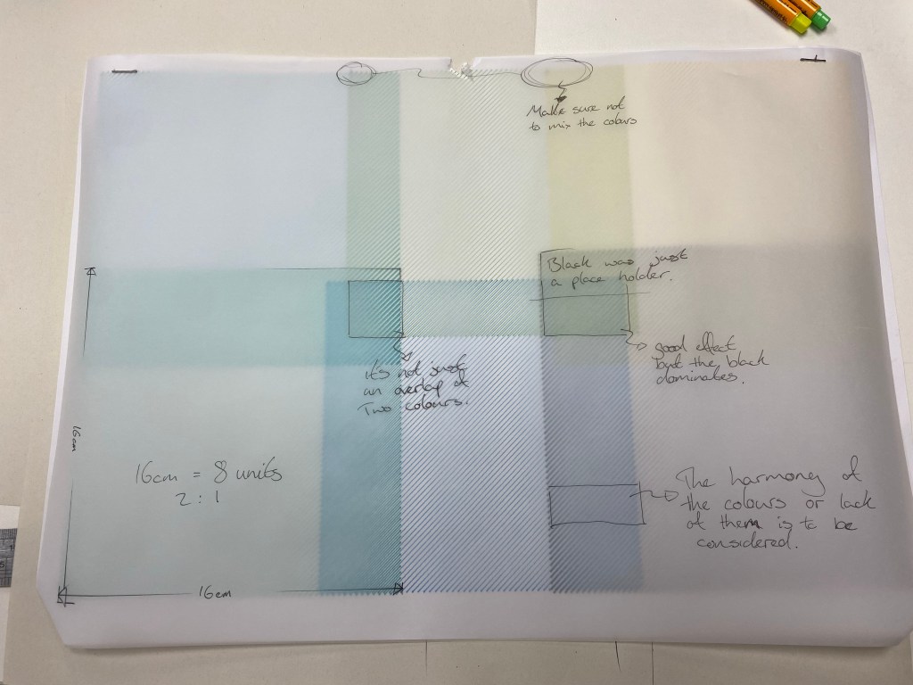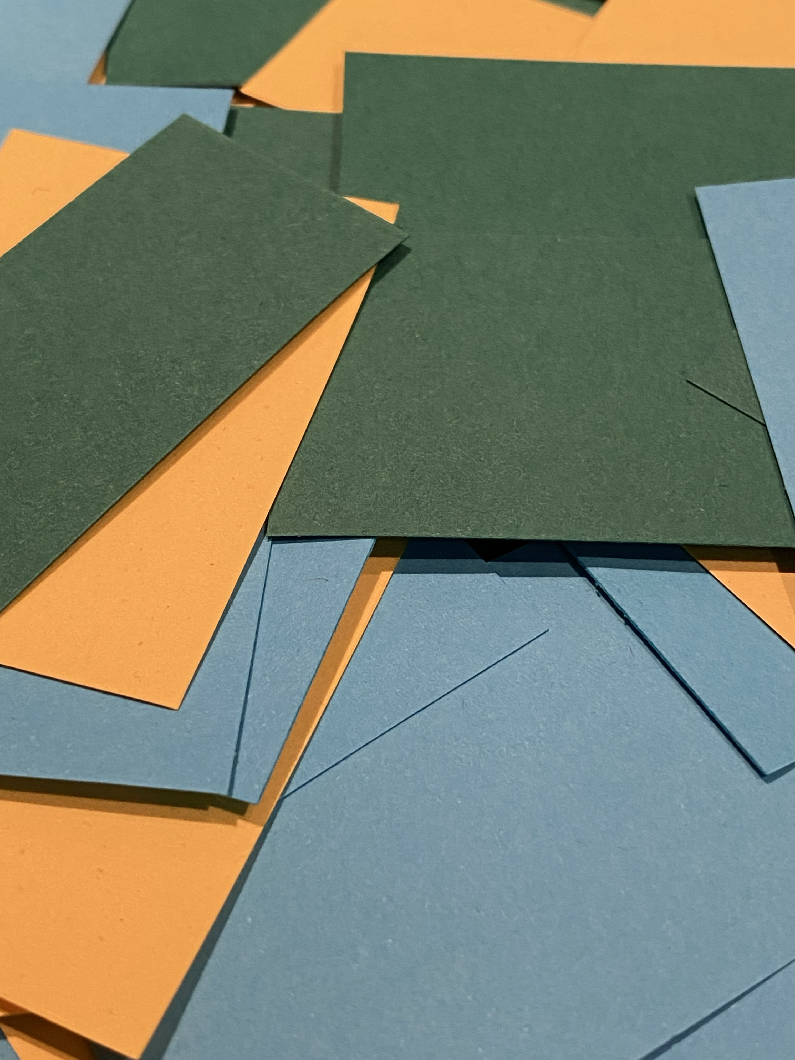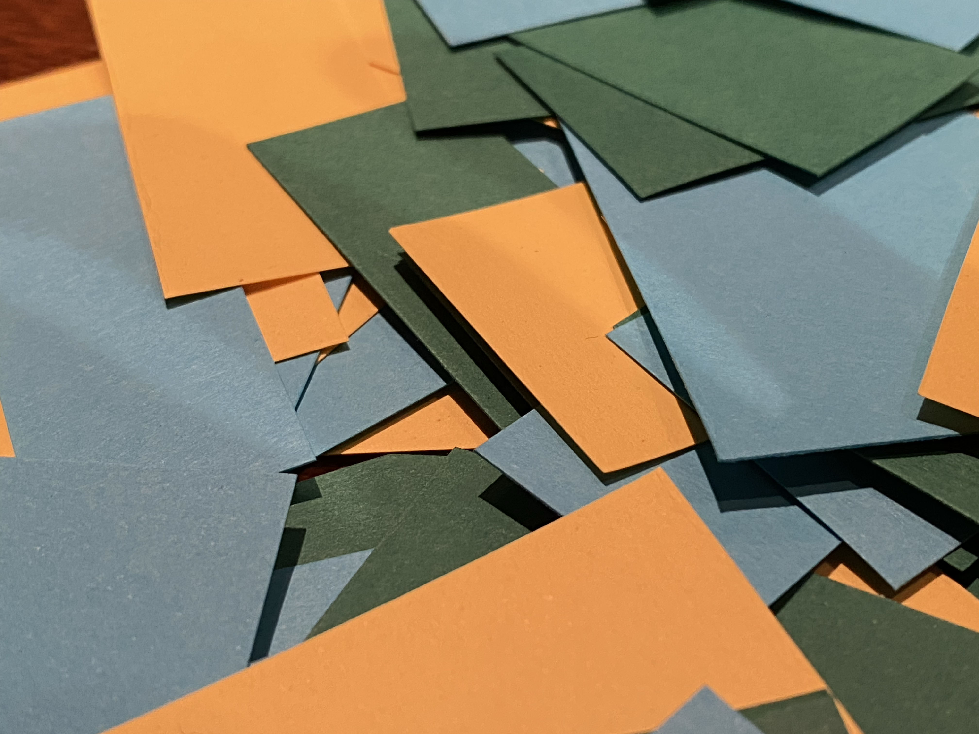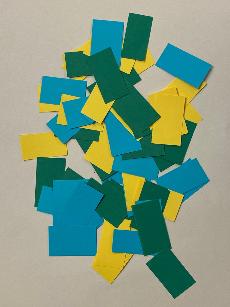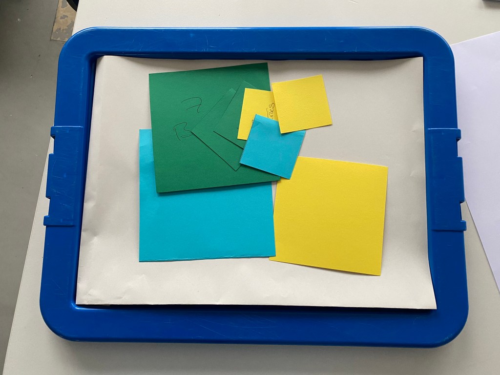 - Thirdly, let the squares from a distance and let them fall where they may (with slight adjusting if they went too far off the paper).