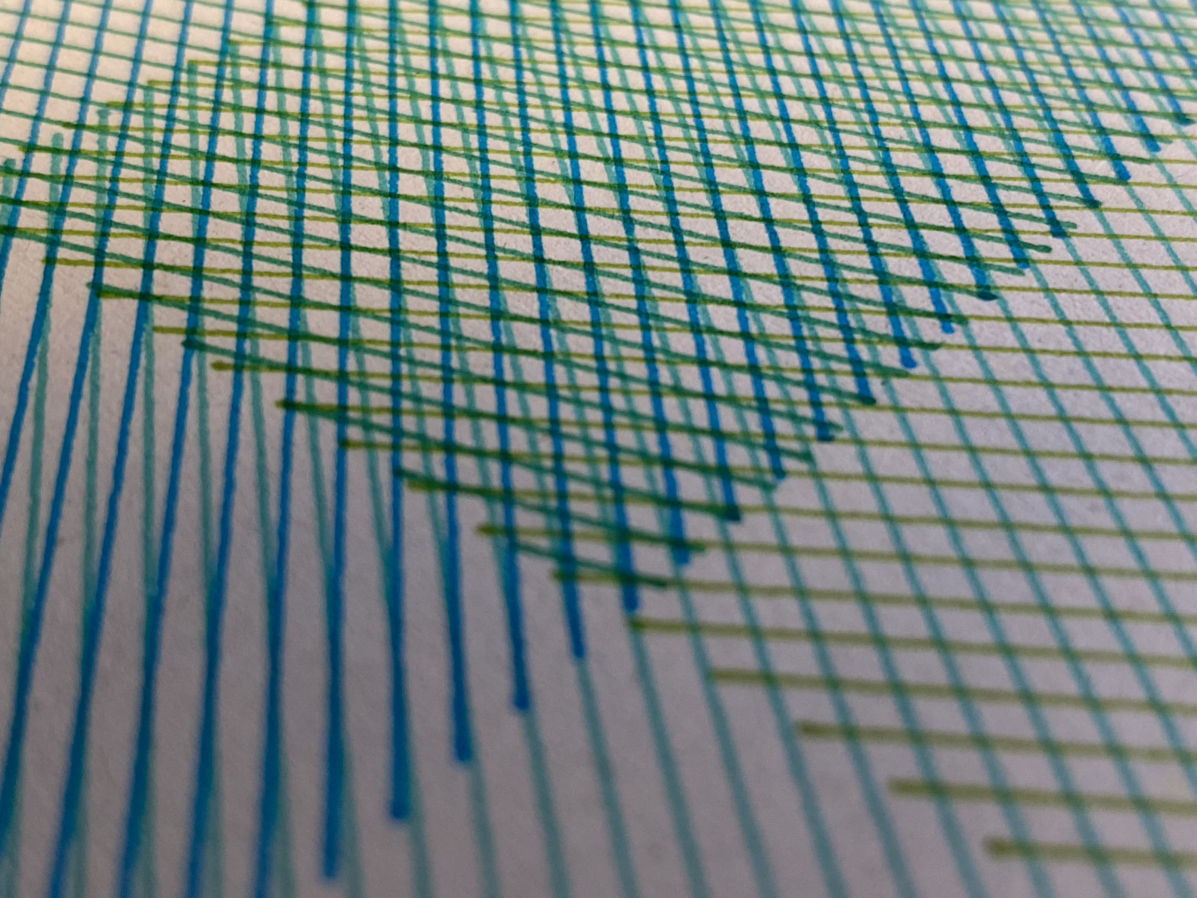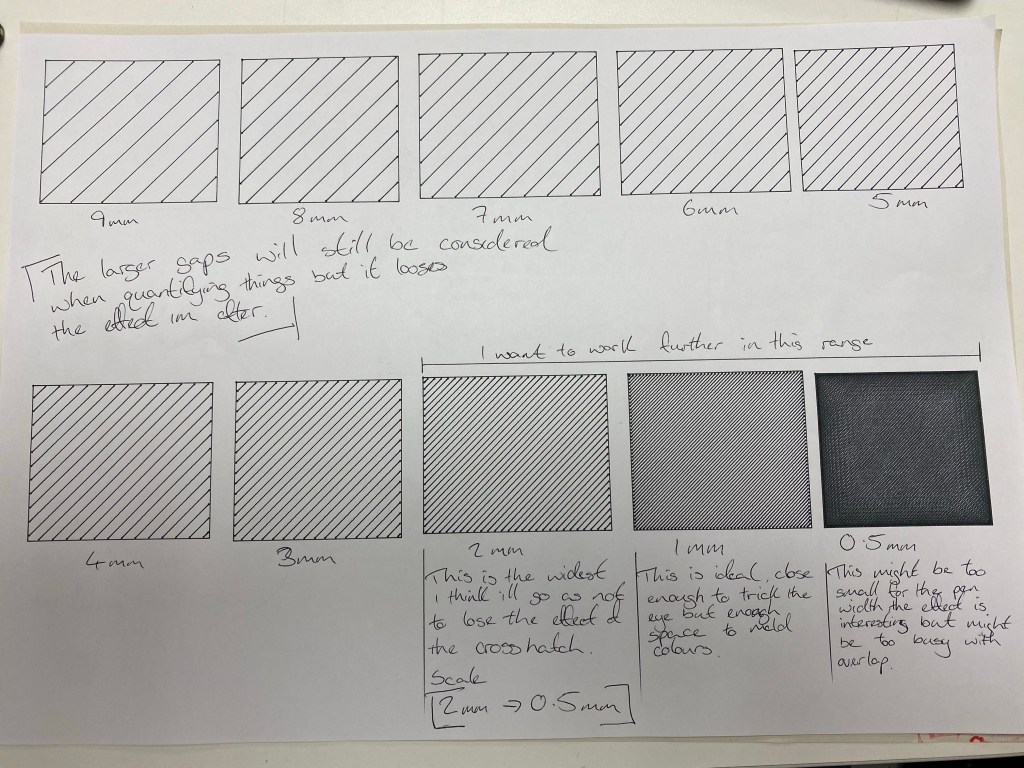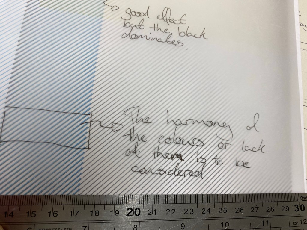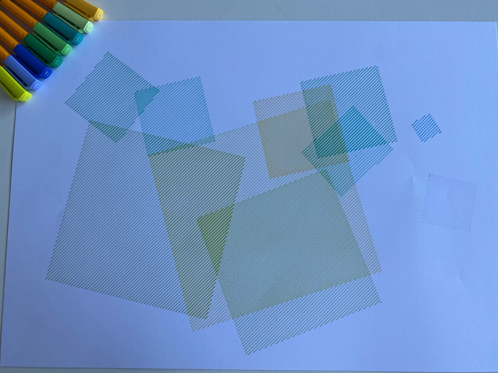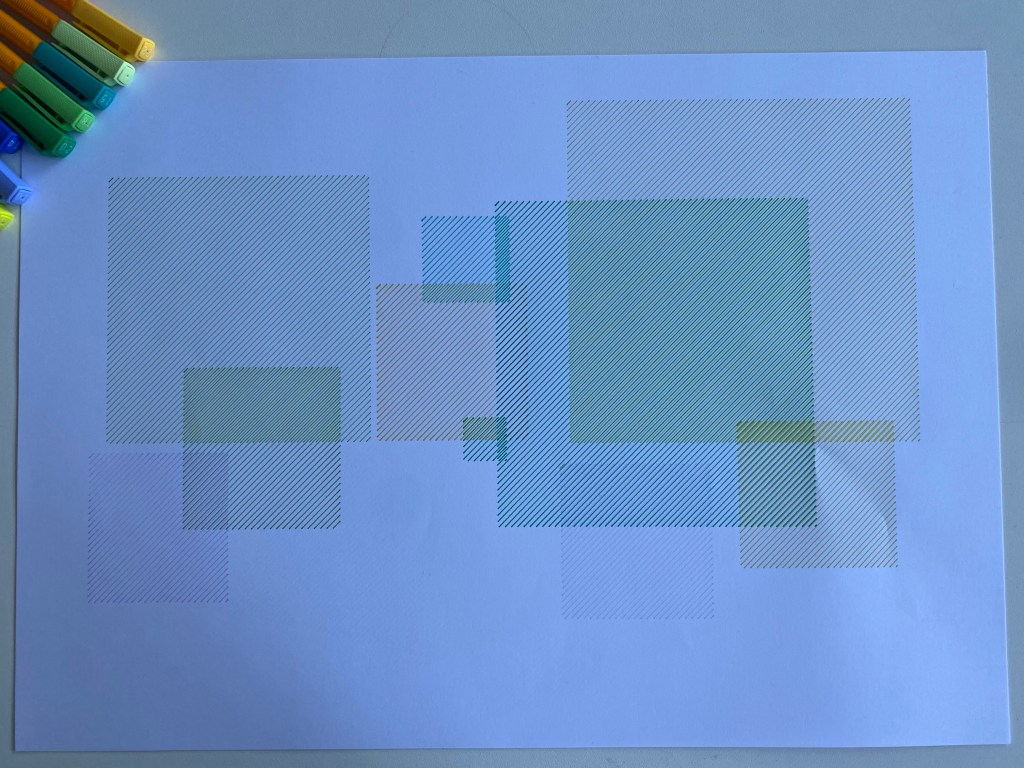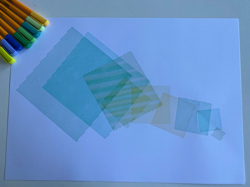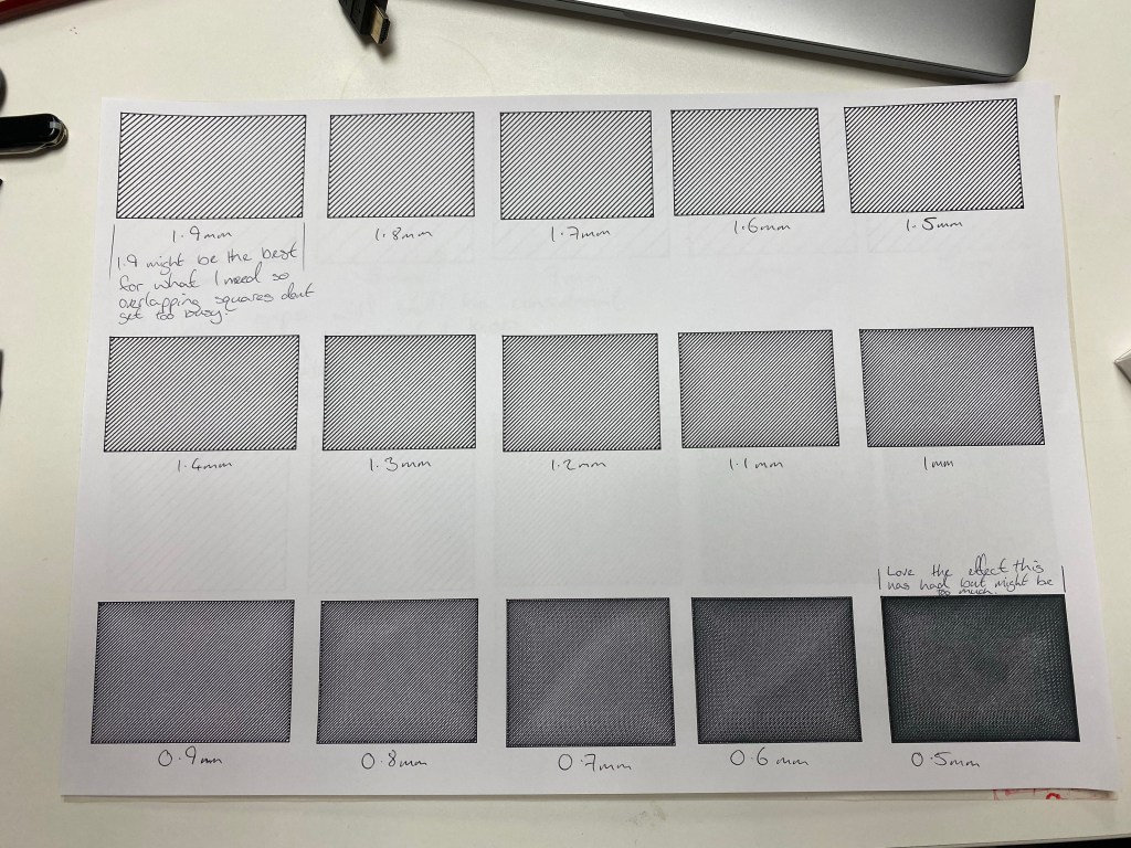 The first experiment didn’t have the right effect when the lines overlapped, so this is the test of more lines that was suggested by Gillian.