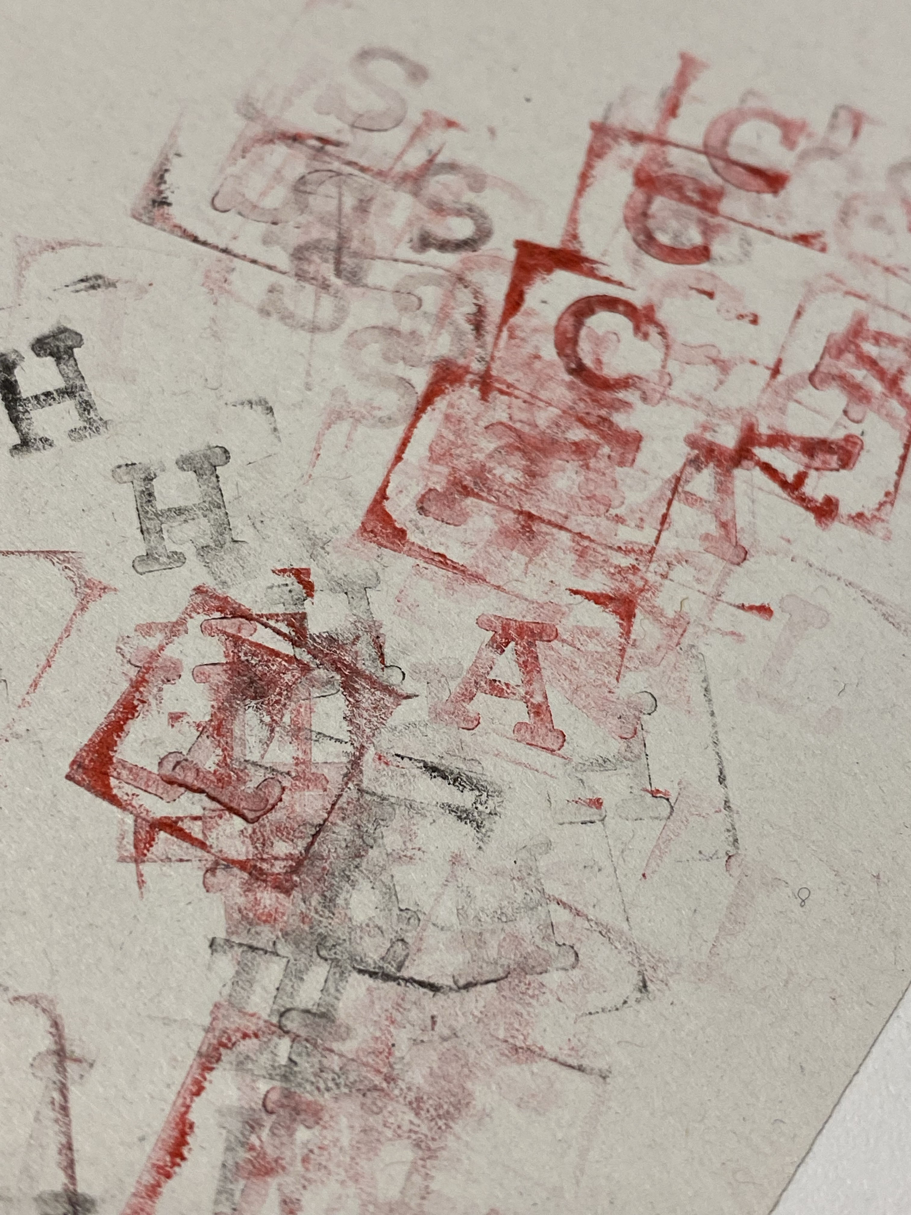 This was just a test after these lettering stamps caught my eye when shopping, the idea being that I continue to open myself up to using different mediums and techniques.