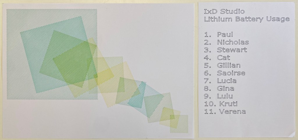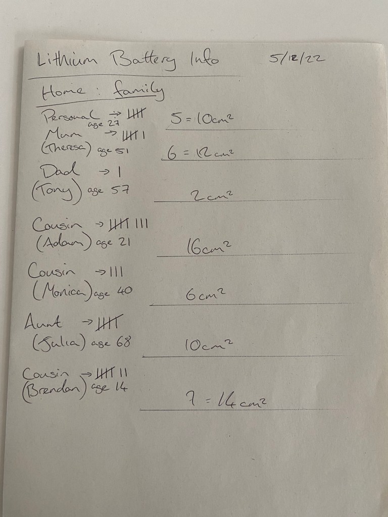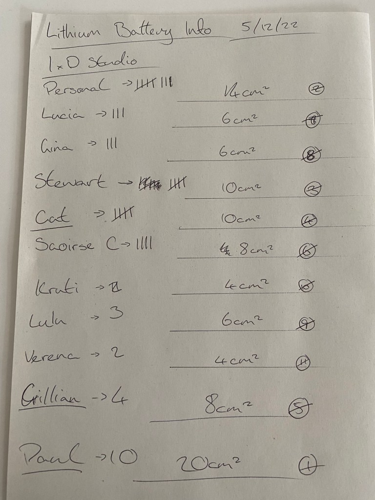 Note to self: Remember always to bring it back to a personal level. If the final piece is too abstract, that might take away from the message, what you’re trying to say, and what you’re trying to highlight. To show people how much lithium they use and how that is damaging.