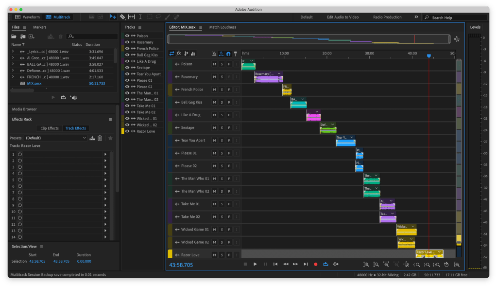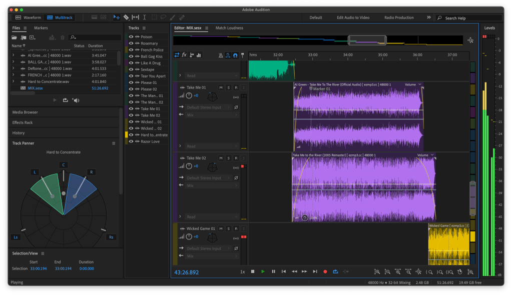 Shown above is just the files of the songs that I was timing together. Trying to find the right level of two songs working together.