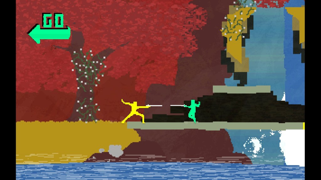 An example of flat pixel art I’ve used is Nidhogg. Now, it is imitating the flat pixel art of the 1980s but with a vibrant colour pallet that wouldn’t have been available in that era.