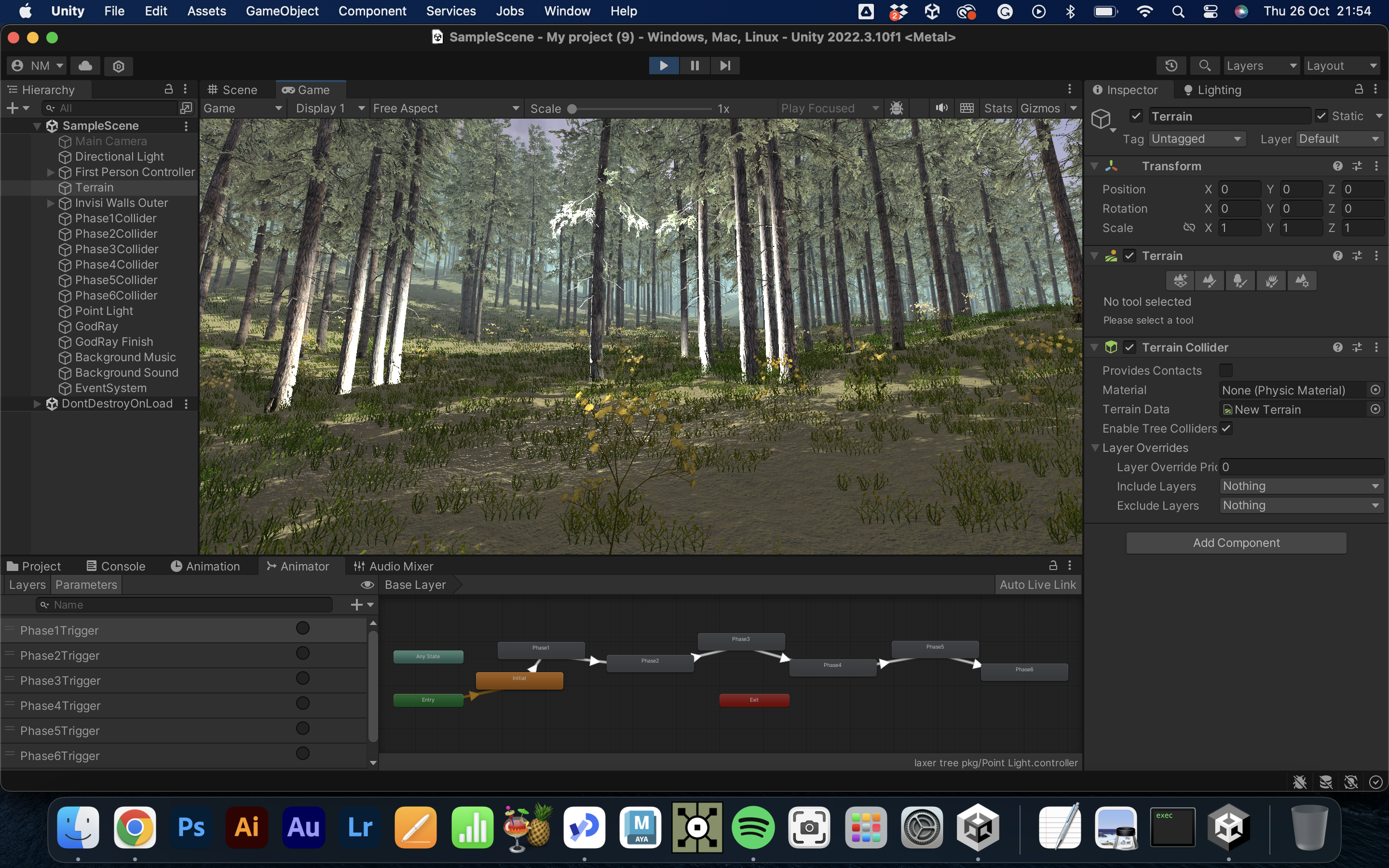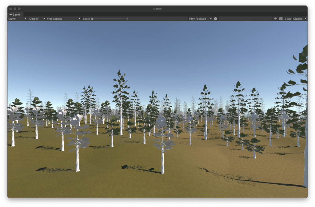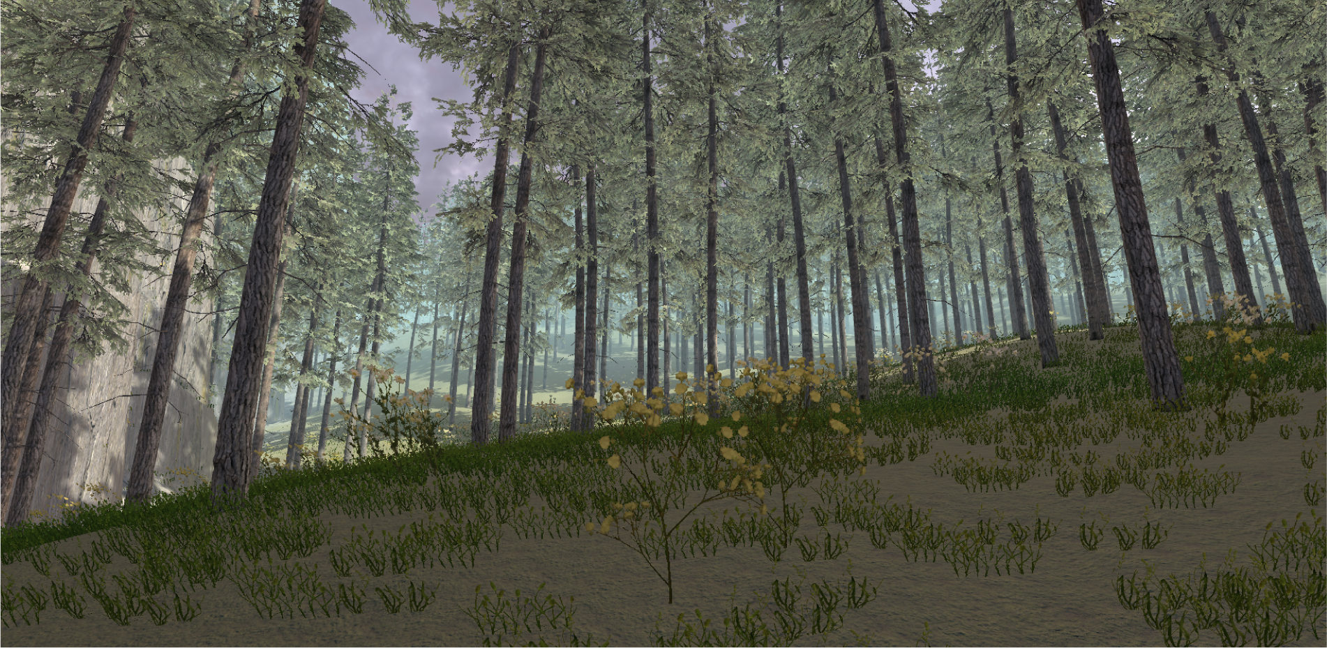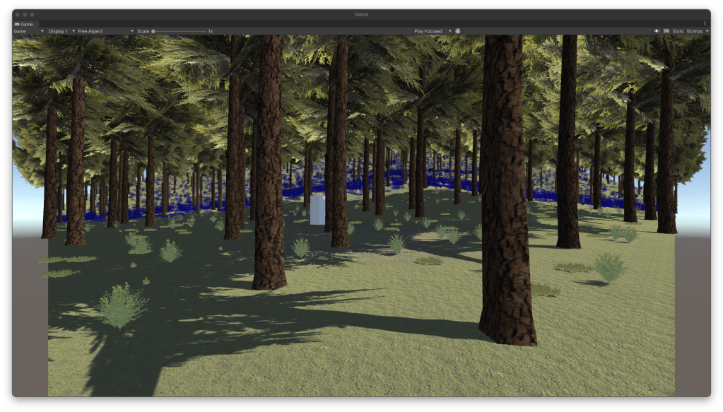 At this stage, I am fine-tuning the look of the forest with the correct tree prefabs, ground textures and grass billboards. At this point, I’m trying to balance the computational power, the almost realistic style and the player immersion simultaneously so that the feeling of a forest or at least the calm of one is apparent.
