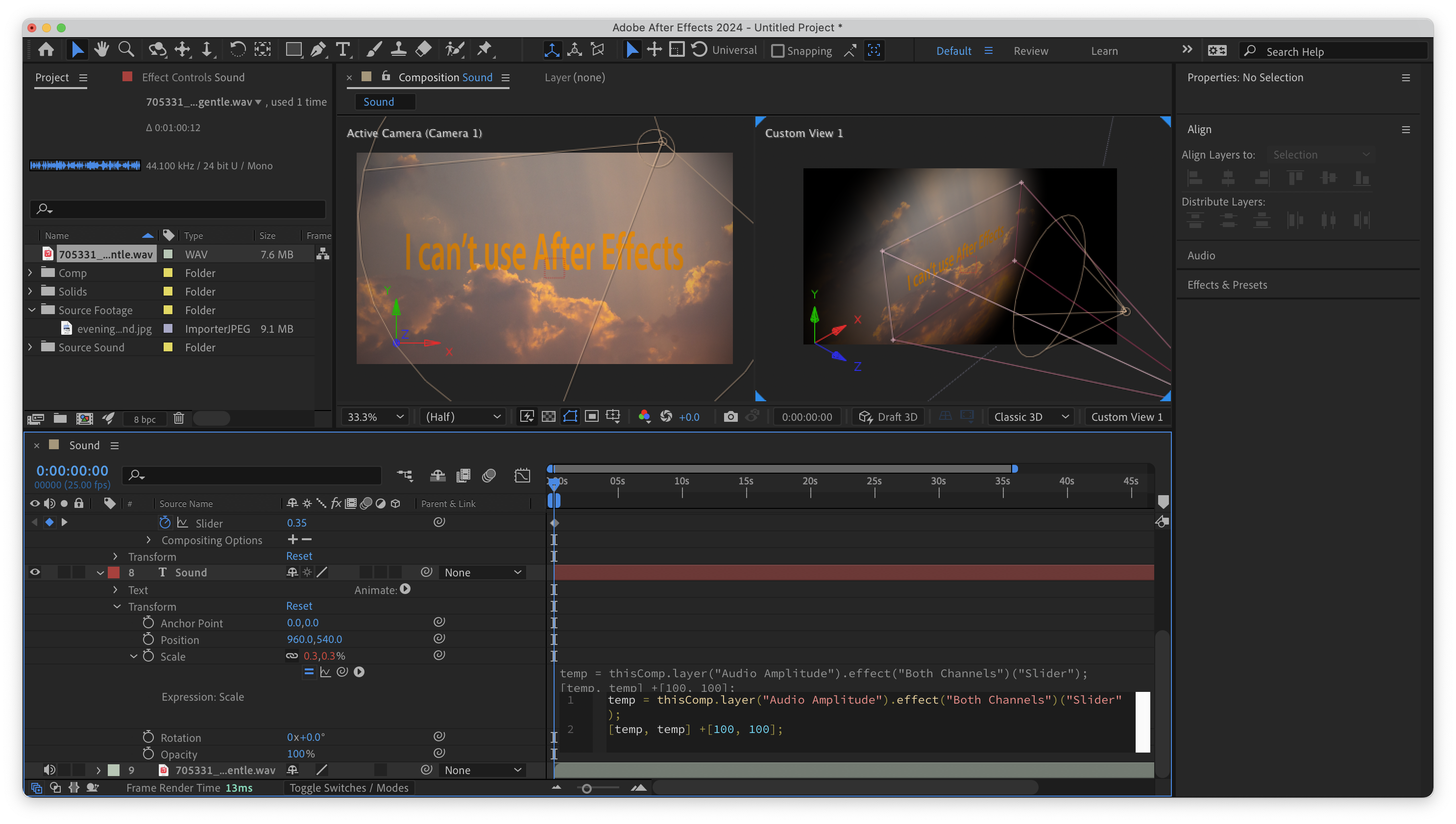 So, instead, I’ve opted for keeping the quiet sounds of the forest with a looping 1-minute guitar piece that is subtle so as not to distract or overpower but still brings warmth and comfort to the scene.