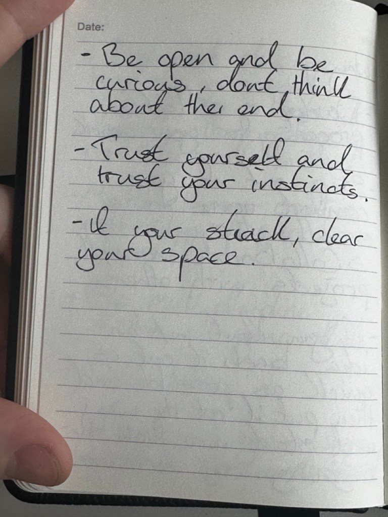 When thinking about the description of my work, I realised how much I was torn between describing it in a very logical, technical way or a very emotional, conceptual way. I found myself pulling away from talking about it more artistically, probably brought on by some doubt or some version of imposter syndrome, but thankfully, inspired by the theme of what I was writing about, I went for the uncomfortable option that was better suited.