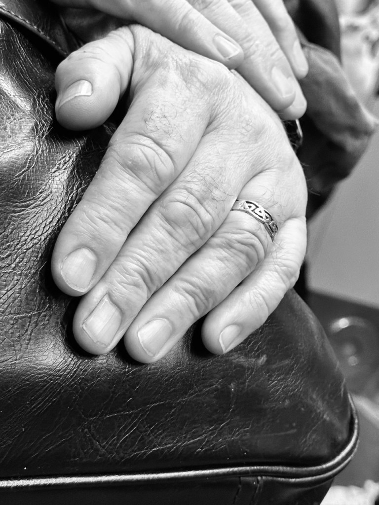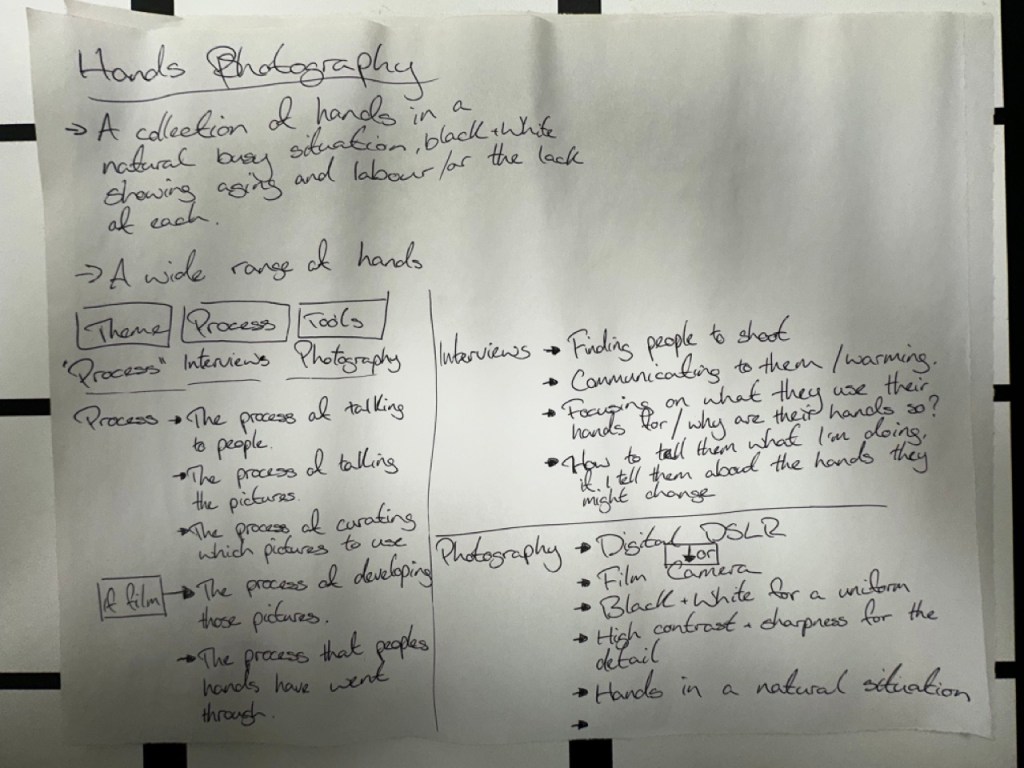 A : I decided on black and white photography as to focus on the detail of the hands and finding a way to link the photographs together.