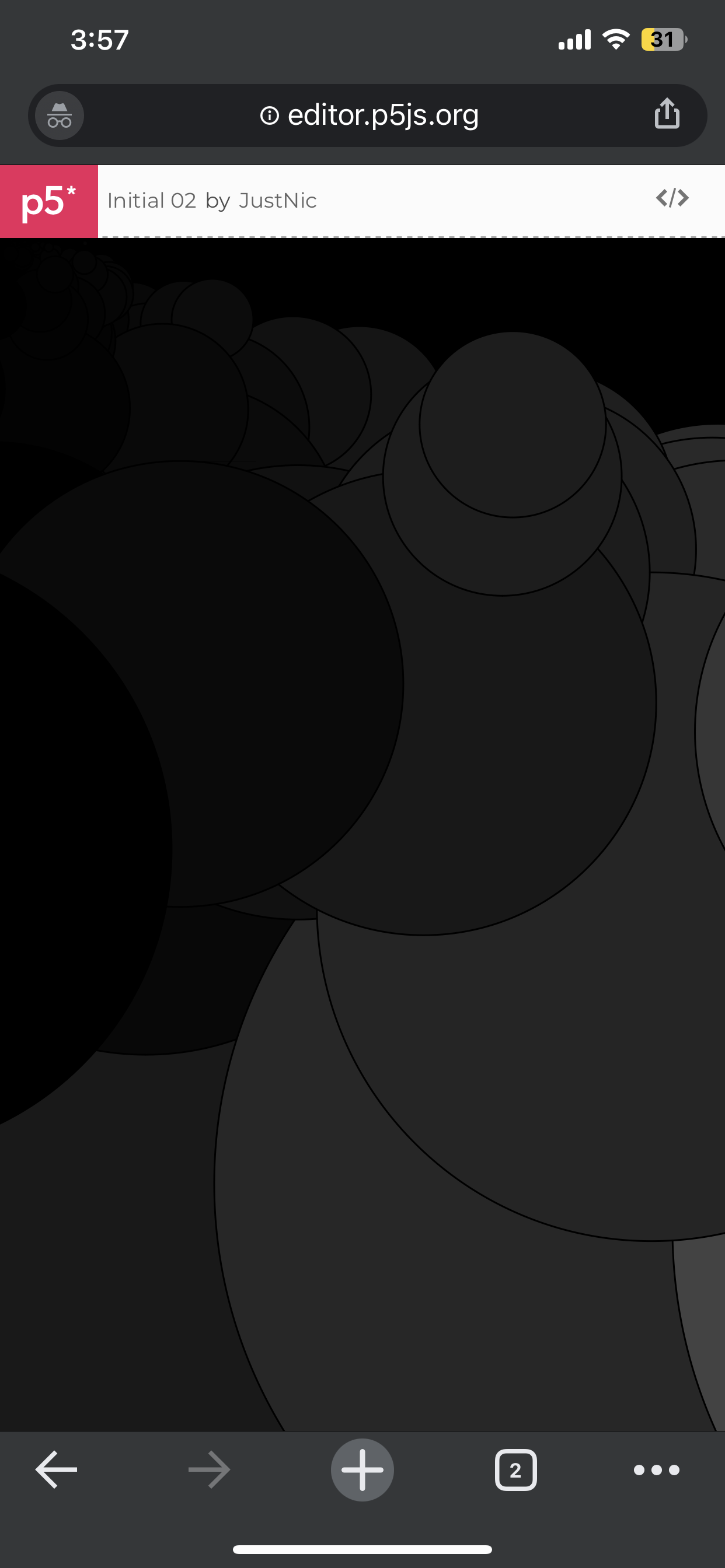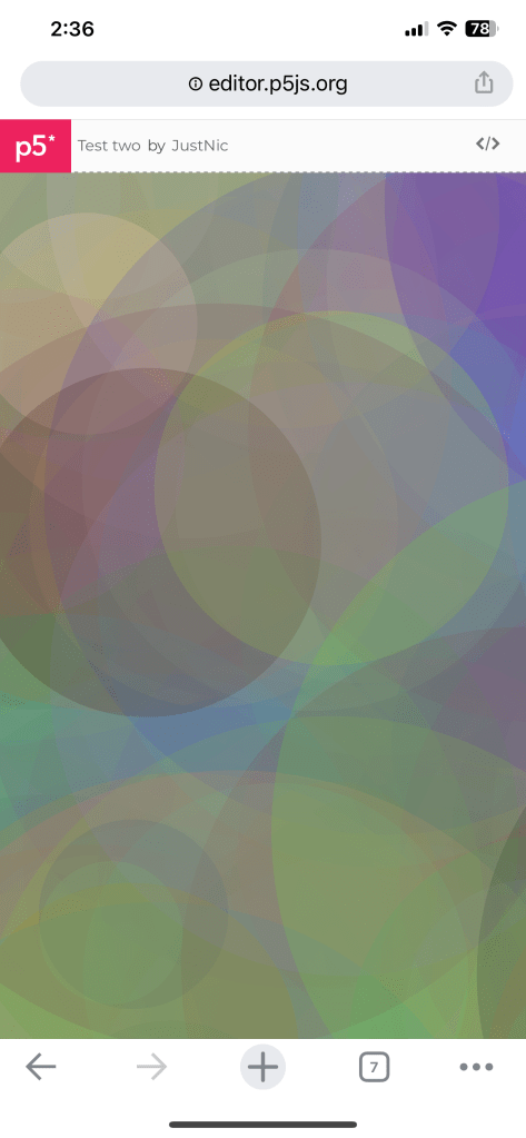 I was getting in my own way before, trying to overcomplicate things. I would look at all these amazing and detailed things people would do on OpenProcessing and my eyes would go fuzzy at the lines and lines of code, but complicated visuals are not always good visuals, art doesn’t have to be incredibly detailed to be good or liked.