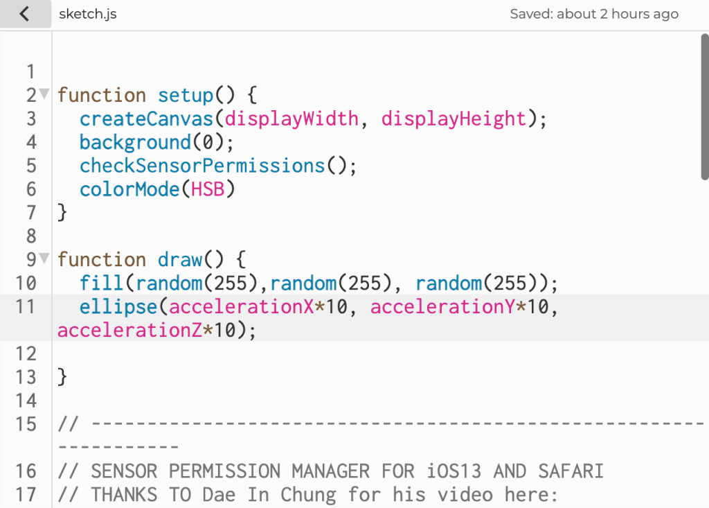 Back to Coding. My return to creative coding and brushing up on basic things again. From the workshop yesterday I still feel there is a lot to work on but with using code in Creative Coding 01, Mobile Web and Sensory Objects I feel a little more confident on using it.
