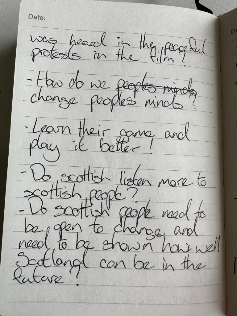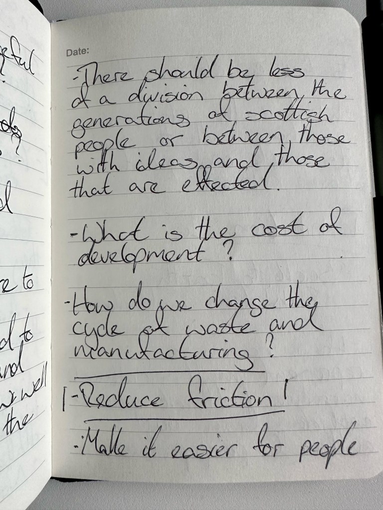 Suppose we aim to change anything or improve anything. In that case, it has to be a collective effort from everyone, not just the students, designers, artists, and technologists but (in the context of Scotland) the Scottish people too.