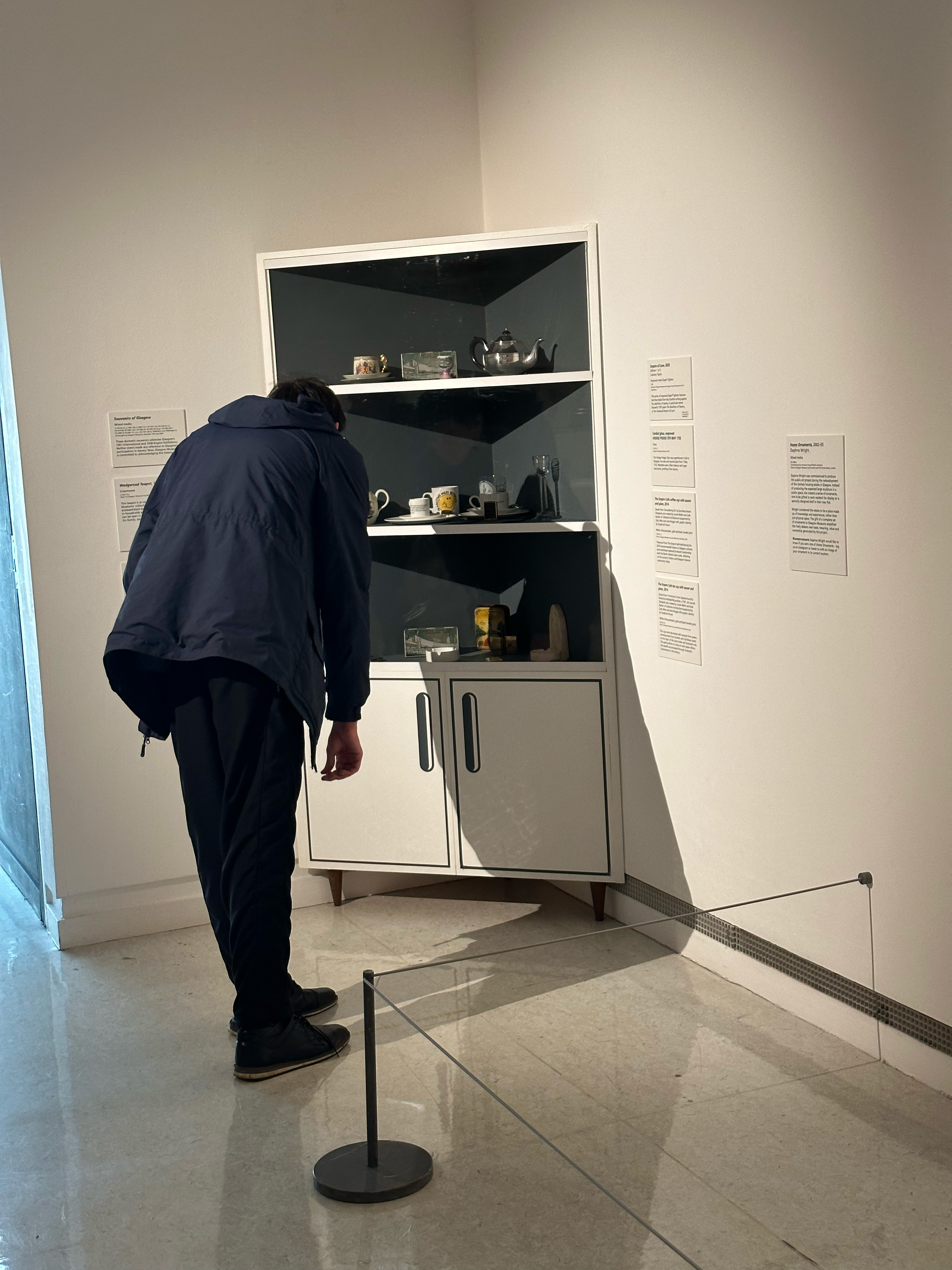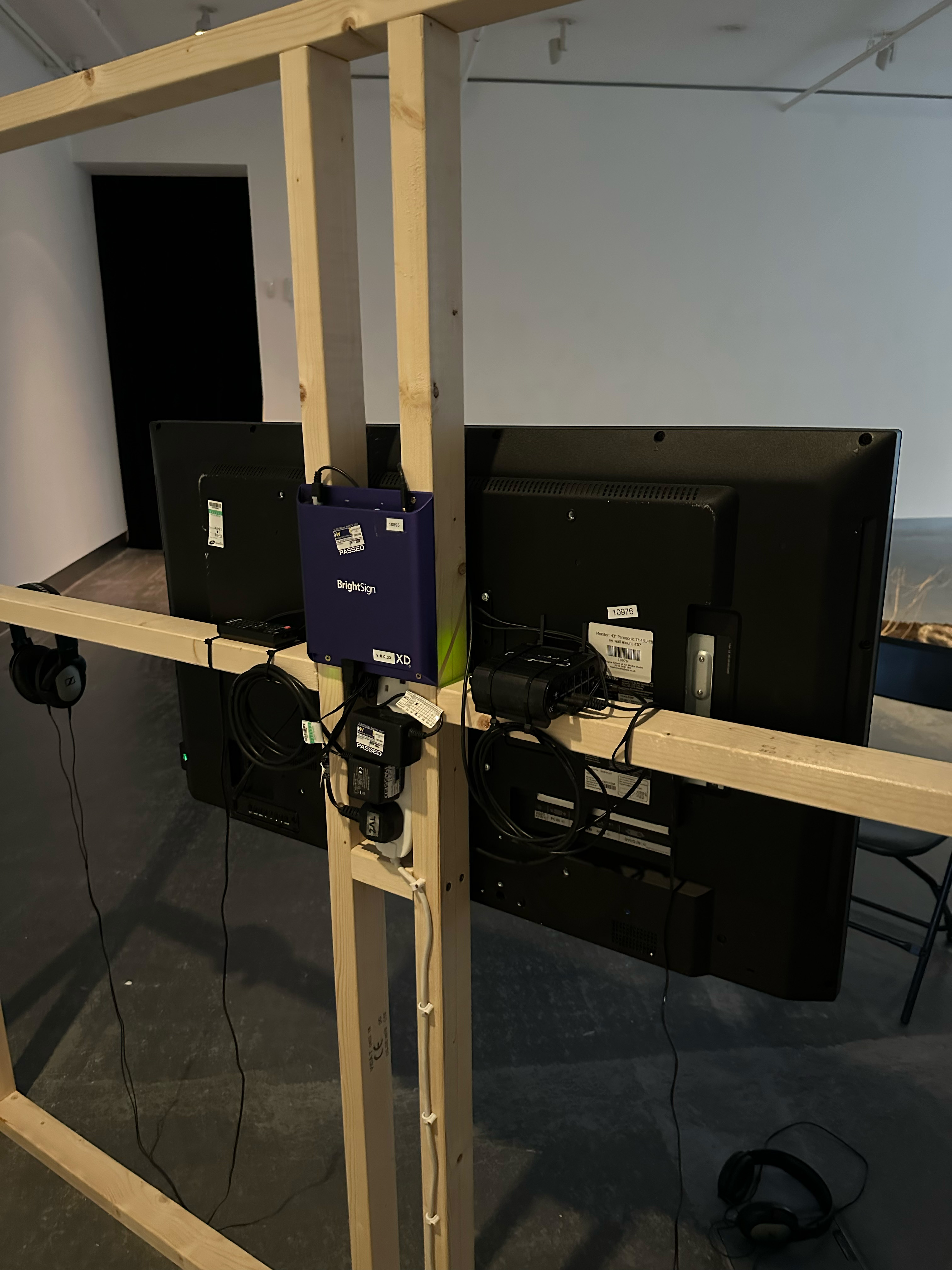 The projector was on the plinth contraption to get as much height as possible. If I had the chance to improve this, I would mouth the projector on the ceiling to allow for a more diverse placement of the boxes and utilise the top of the boxes.